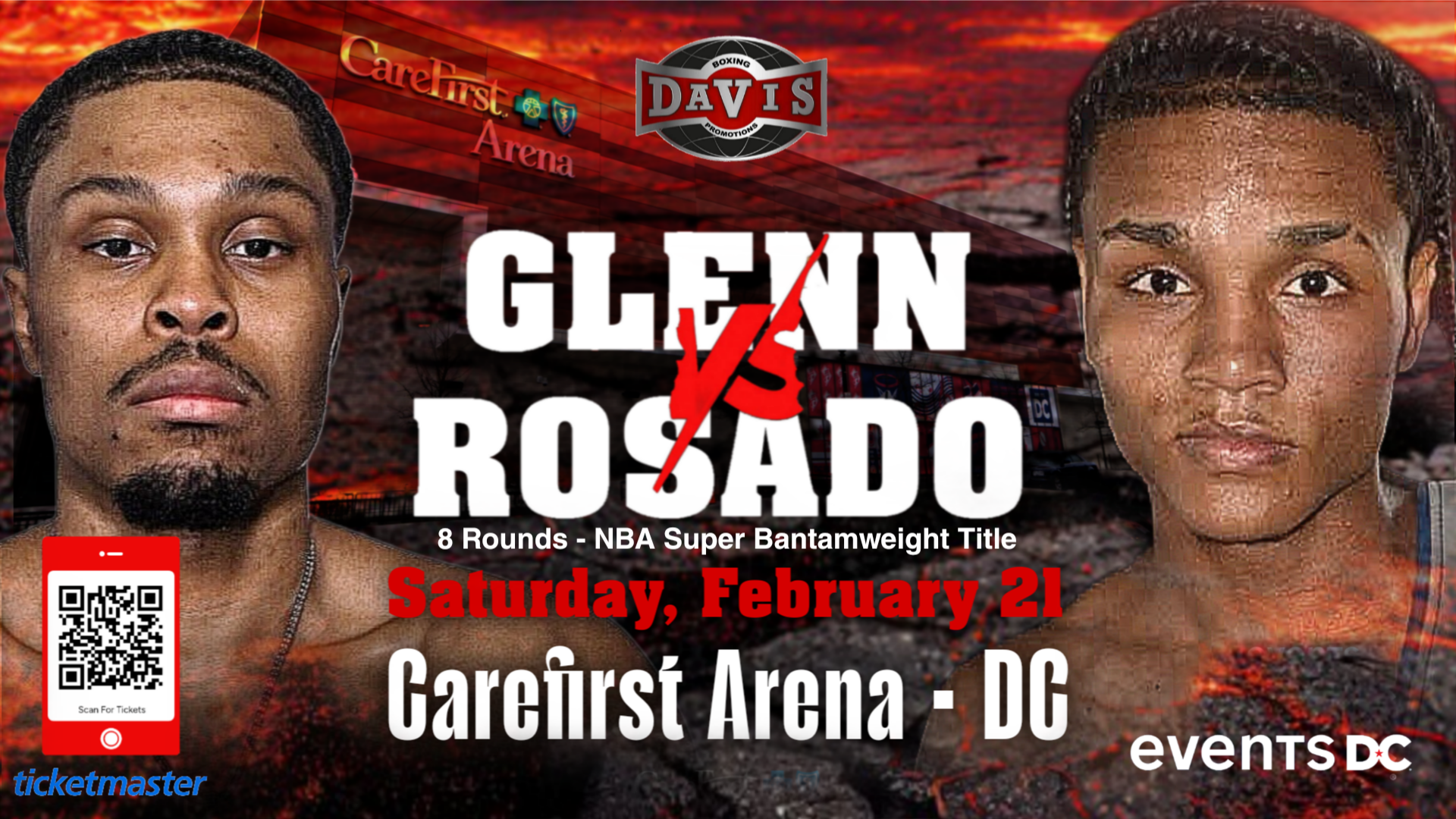 Davis Boxing Promotions Presents Grind & the Glory: Featuring Headliner Maryland's Undefeated (9-0 KO3) Chris " The BluePrint" Glenn as he defends his NBA Super Bantamweight Title against the heavy-handed fighter from Dominican Republic (15-3 KO11) Erick "El Flash" Rosado in a 8 round Title Showdown!
