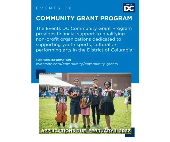 As an active and engaged community member, Events DC is proud to continue to support the future of non-profit organizations in Washington, DC that promote youth participation in both the arts and athletics. For Fiscal Year (FY) 2022, Events DC is pleased to provide funding for the program of $500,000 during two grant cycles ($250,000 in the first cycle and $250,000 in the second cycle). Cycle 2 applications are due February 1, 2022.