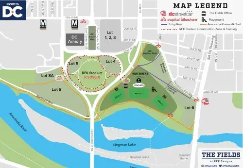 The demolition process of RFK Stadium is currently underway. Recently, fencing was installed around Lot 4, which restricts public access to pedestrian pathways inside of the RFK Stadium's ring road and will remain closed for the duration of the project. The tunnels between Lots 5 and 8 and Lots 4 and 7 are also closed. The fencing provides a safe and secure perimeter around the active construction site. Access to the Robert F. Kennedy Memorial and Gideon's Garden will remain open. The Anacostia Riverwalk Trail will not be impacted by the fencing. Trails can still be accessed from Independence Avenue, as well as 21st Street and Oklahoma Avenue entrances. Please stay tuned to future newsletters for more news and updates on the demolition progress.